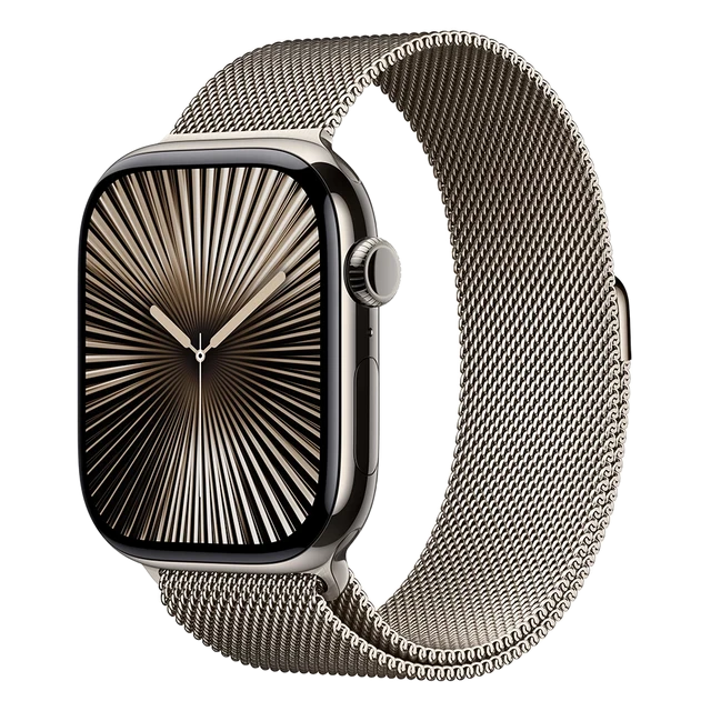 Apple Watch Series 10, 46 мм, корпус из алюминия цвета Пустынный титан, ремешок Milanese, цвет серый (natural titanium), M/L