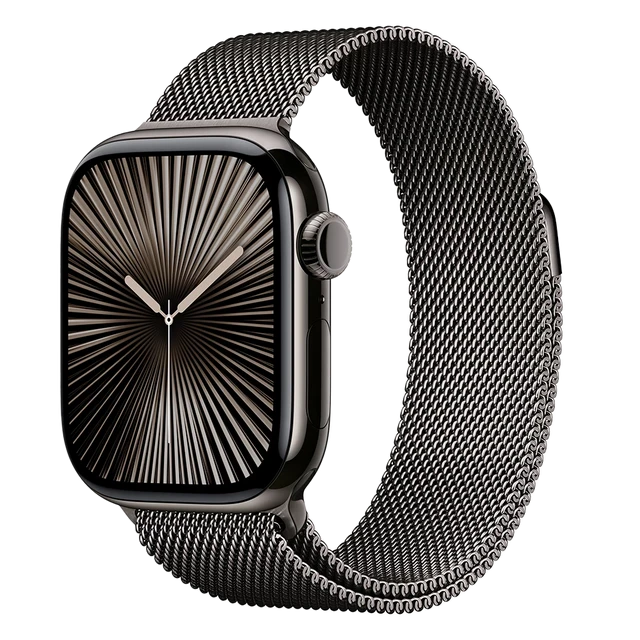 Apple Watch Series 10, 46 мм, корпус из титана цвета Пустынный титан, ремешок Стальной, цвет серый (natural titanium)