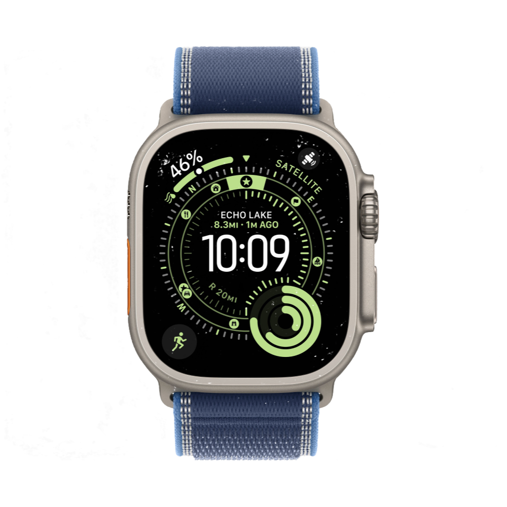 Apple Watch Ultra 3, 49 мм, корпус из титана цвета Серый (Natural Titanium), ремешок Trail, цвет синий, M/L